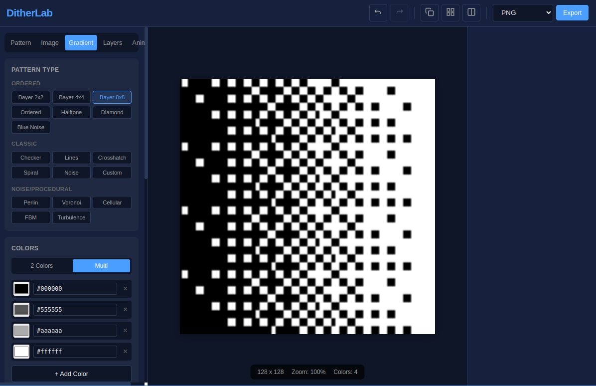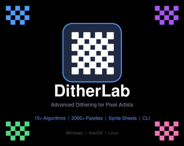 DitherLab gives you everything you need to create authentic retro graphics, game sprites, and pixel art masterpieces. Whether you're making assets for a Game Boy-style game or converting photos into 1-bit art, DitherLab has you covered.